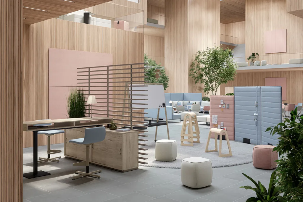 Treffen viele Personen in einem Zimmer zusammen, steigt der Lärmpegel. Reduzieren Sie Ablenkungen durch Lärm und Bewegung durch die clevere Gestaltung des Raums.