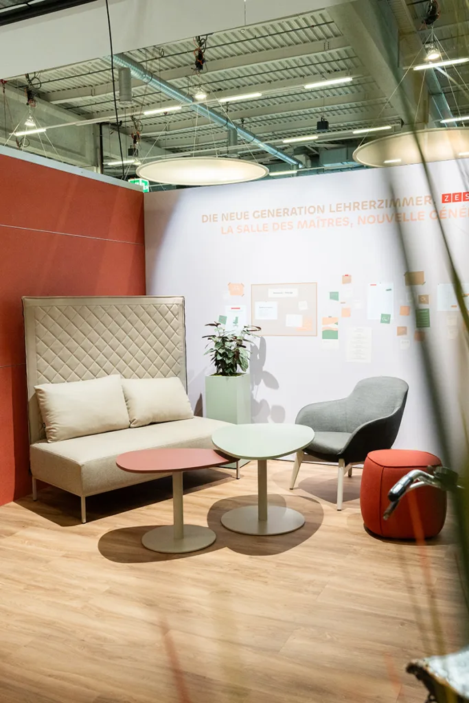 Für die Swissdidac 2025 hat Zesar einen komplett neugestalteten Stand präsentiert. Er setzte sich aus zwei zentralen Bereichen zusammen: einem Klassenzimmer, das für die Schule von morgen konzipiert wurde, sowie einem neu entworfenen Lehrerraum, der auf Wohlbefinden und Zusammenarbeit ausgerichtet ist.